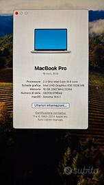 Vendo MacBook Pro 2019 perfettamente tenuto. Batteria praticamente nuova 211 cicli di ricarica