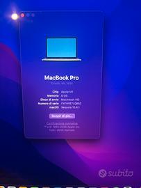 Vendo MacBook Pro del 2020 con Chip M1, 8GB di Ram e 256GB SSD, utilizzato principalmente per produzione musicale e attività di ufficio generali Tiene molto bene la carica (stato batteria 96%) Perfetto sia dal punto di vista estetico che di funzioni, anche la touchbar funziona molto bene Preferibile consegna a mano Prezzo leggermente trattabile Venco per passaggio a Mac Mini