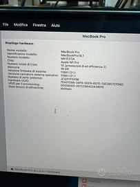 Come da titolo vendo apple macbook pro da 16” pollici , perfette condizioni , 16 Gb di ram , 500Gb di ssd , 90% di batteria , pochissimi cicli di carica . Completo di scatola originale, cavo , cover protettiva. Vendo solo per la pesantezza del pc , purtroppo ho necessità di un pc piu leggero , altrimenti non lo venderei , una vera bomba! NO PERDITEMPO Grazie