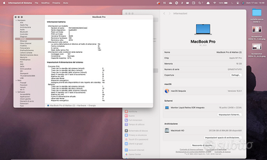 MacBook Pro 2021 - 16", 1TB SSD, M1 Pro - Perfette Condizioni Vendo MacBook Pro 2021 con schermo Retina da 16 pollici, processore Apple M1 Pro, 1 TB di memoria SSD e 16 GB di RAM. Il computer, acquistato il 16 aprile 2022, offre prestazioni eccezionali, ideali per attività professionali come editing video, grafica e programmazione, oltre a un'ottima resa per un utilizzo quotidiano. È stato utilizzato esclusivamente nel tempo libero, come dimostra lo stato impeccabile della tastiera e l’assenza di graffi o segni di usura. È pari al nuovo e tenuto sempre con la massima cura. Caratteristiche principali: Processore Apple M1 Pro (potente e a basso consumo). Schermo Retina da 16" con True Tone. 1 TB SSD per uno spazio di archiviazione ampio e veloce. 16 GB di RAM per gestire applicazioni e multitasking senza problemi. Sistema audio ad alta fedeltà con 6 altoparlanti e Dolby Atmos. Incluso: Tutti gli accessori originali presenti al momento dell’acquisto (come visibile in foto). Regalo una custodia morbida (non presente in foto). Motivo della vendita: inutilizzo. Consegna: preferisco lo scambio a mano. Prezzo: leggermente trattabile. Sono disponibile per ulteriori informazioni o per inviare foto aggiuntive.