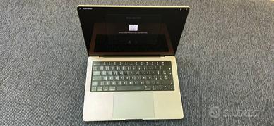 MacBook Pro 2021, 14 pollici, dotato del chip Apple M1 Pro, display Liquid Retina XDR (con tecnologia ProMotion a 120Hz) e webcam a 1080p. Ha introdotto un telaio ridisegnato, la ricarica MagSafe 3, una porta HDMI, uno slot per schede SD e tre porte Thunderbolt 4. Specifiche Tecniche: MacBook Pro 14" (M1 Pro) Core Performance: Chip Apple M1 Pro CPU: 8-core (6 performance core e 2 efficiency core). GPU: 14-core. Neural Engine: 16-core. Larghezza di banda memoria: 200 GB/s. Media Engine: Accelerazione hardware per H.264, HEVC, ProRes e ProRes RAW; motori dedicati per decodifica e codifica video (incluso ProRes). Display Liquid Retina XDR Dimensioni: 14,2 pollici (diagonale) con risoluzione nativa 3024x1964 a 254 ppi. Luminosità: * XDR: 1000 nit costanti (full-screen), 1600 nit di picco (solo contenuti HDR). SDR: 500 nit. Contrasto: 1.000.000:1. Tecnologie: 1 miliardo di colori, Wide color (P3) e True Tone. ProMotion: Frequenza di aggiornamento adattiva fino a 120Hz. Frequenze fisse: 47.95Hz, 48.00Hz, 50.00Hz, 59.94Hz, 60.00Hz. Memoria e Archiviazione Memoria Unificata: 16GB. Archiviazione: SSD da 512GB. Batteria e Alimentazione Autonomia: Fino a 17 ore di riproduzione film (app Apple TV) e fino a 11 ore di navigazione web wireless. Batteria: Ai polimeri di litio da 70 wattora. Ricarica: * Alimentatore USB-C da 96W (incluso con CPU 10-core o M1 Max; configurabile per CPU 8-core). Cavo da USB-C a MagSafe 3. Supporto per la ricarica rapida con alimentatore da 96W