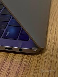 MacBook Pro 2016 grigio siderale con Touch Bar, 256 GB, 8 RAM, 13 pollici. Presenta alcuni danni all'esterno, ma solo sulla cover, niente all'interno del MacBook o sullo schermo presenta danni.