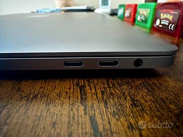 Vendo MacBook Pro con processore Intel, perfettamente funzionante. Il display è integro e senza difetti, così come tastiera, trackpad e tutte le porte. Il computer segnala la necessità di sostituire la batteria tramite alert di assistenza consigliata: il Mac è utilizzabile anche così, ma per un utilizzo ottimale è consigliato il cambio batteria. Sono presenti normali segni estetici sul case, visibili in foto, che non influiscono in alcun modo sul funzionamento.