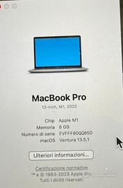 Macbook Pro M1, 13 pollici, 256 Gb, perfettamente funzionante