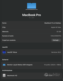 MacBook Pro M1 Max 14" - 32 Gb ram - 1 Tb Hdd