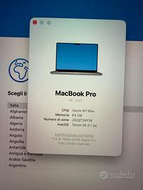 Macbook Pro M1 Max 64Gb RAM 1Tb SSD