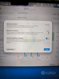 16 GB RAM e 512 GB SSD batteria ottima al 90% alimentatore da 96W e cavo originali scatola originale non ha neanche un graffio, sempre tenuto con cover rigida cover inclusa colore space gray
