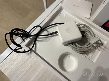 Macbook Pro M1 funzionante con batteria a 85% , prolunga originale apple, cavo originale (rovinato in parte) e sostitutivo, cover di plastica e di tessuto per trasporto.