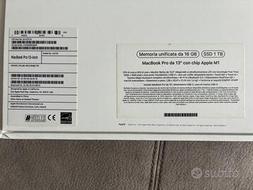 Vendo MacBook Pro 13 pollici con chip Apple M1, perfettamente funzionante e tenuto con grande cura. 💻 Caratteristiche principali: Chip Apple M1 (CPU 8-core, GPU 8-core) Memoria unificata: 16 GB SSD: 1 TB Display Retina 13,3” con True Tone Tastiera Magic Keyboard retroilluminata Touch Bar e Touch ID macOS aggiornato 🔋 Condizioni: Usato pochissimo, sempre in ambiente domestico Nessun difetto funzionale Esteticamente in ottime condizioni (normali lievissimi segni d’uso) 📦 Accessori inclusi: Scatola originale Caricatore Apple originale Cavo USB-C originale ✅ Ideale per lavoro, studio, produzione musicale, editing foto/video grazie ai 16GB di RAM e al chip M1 ancora molto performante.