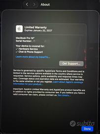 Vendo Macbook Pro M5 colore Nero Siderale con 1 TB SSD E 24 GB di RAM, il pc è stato acquistato nuovo da me in data 22/01/2026 ed è stato usato veramente pochissimo e mai portato fuori di casa , esteticamente perfetto , non presenta nessun segno ne difetto, vendo per inutilizzo , essendo un utente windows da sempre purtroppo non mi ci trovo . Capacità della batteria ancora al 100%.Il pc è ancora in garanzia ufficiale Apple fino al 20 Gennaio 2027 .disponibile amche fattura . Possibilita di spedizione o di ritiro a mano in zona da concordare.