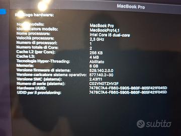 macbook pro in ottime condizioni e aggiorniato all'ultima versione supportata. batteria sostituita