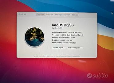 Apple MacBook Pro Retina 13" Mid 2014 i5-4278U CPU 8GB 2.60GHz 128GB