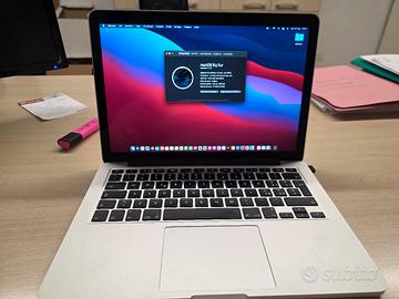 vendo macbook pro retina da 13" perfettamente funzionante, senza raschi o difetti. La batteria dura ancora 4 ore di utilizzo. Vendo in quanto non utilizzo macos, quindi è totalmente inutilizzato