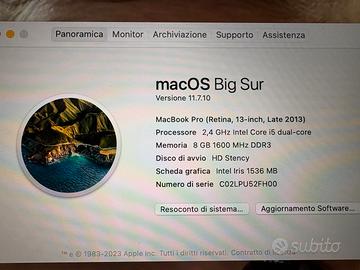 MacBook Pro Retina 13” (Metà 2013) - i5/8Gb/256Gb