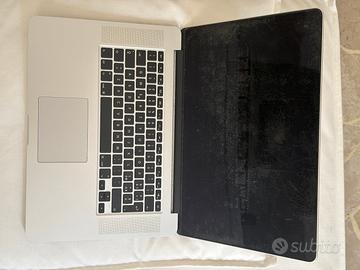 Vendo MacBook Pro Retina 15-inch Mid 2015, macOS Monterey versione 12.6.7, Processore 2,2 GHz Intel Core i7 quad core, Memoria 16 GB (nelle foto indicate altre specifiche). Presenta batteria da sostituire. Per utilizzarlo dev’essere collegato a caricatore. Non ha nessuna ammaccatura o rigatura esterna visibile. Lo schermo ha difetti visibili da foto ma quando acceso non si notano molto. Vendo insieme il caricatore.