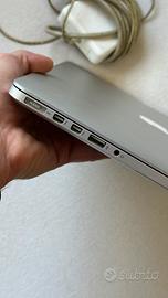 Esteticamente in ottime condizioni generali, qualche normale segno di usura che nemmeno si nota. 15 pollici, batteria sostituita non molto tempo fa con solo 229 cicli di ricarica, processore potenziato 2,5GHz i7 quad core, memoria SD 500gb, RAM 16gb (varie info tecniche nelle foto). Adatto a chi cerca un MacBook per lavoro d’ufficio o svago personale, non per designers. L’unico neo è che la cassa sx gracchia, per cui andrebbe sostituita se si ha intenzione di ascoltarci musica, altrimenti c’è la possibilità di far uscire l’audio solo dalla cassa dx, per il resto funziona perfettamente. Ovviamente compreso di caricatore e disponibile per la spedizione!