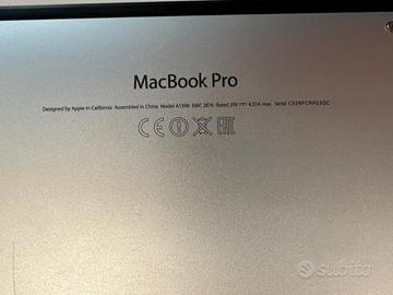 Display retroilluminato LED da 15,4" (diagonale) con tecnologia IPS; risoluzione nativa 2880×1800 a 220 pixel per pollice; supporta milioni di colori