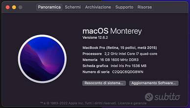 MacBook Pro 2015 Retina 15 pollici – SSD 1TB / RAM 16GB