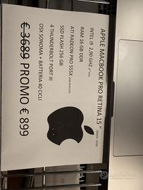 Condizioni estetiche ottime Cpu i9 ram 16 GB disco da 256 Gb Garanzia 1 anno Anno 2018 Tastiera layout ita Prezzo non trattabile