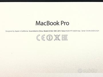 MacBook Pro modello A1502 (Retina, 13-inch, Mid 2014), con SSD da 512 GB.