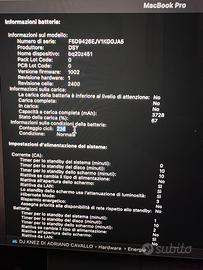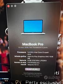 MacBook Pro i5 2019 – Prezzo affare 450€ Vendo MacBook Pro i5 anno 2019 in condizioni impeccabili, sempre usato con cover, nessun graffio. ⚠️ Difetto da segnalare: •cassa sinistra non funzionante (destra ok). Con cuffie o casse esterne funziona perfettamente. 📸 Specifiche complete (RAM, memoria e cicli batteria) nelle foto. 💰 Prezzo: 450€ – affare 👉 Solo interessati seri ❌ No perditempo