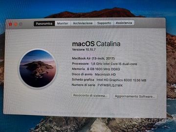 vendesi computer apple macbook air 1,8 ghz intel i core 5 8gb di memoria perfettamente funzionante e gia' formattato