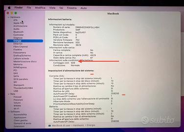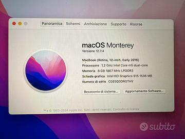 Processore 1,2 GHz Intel Core m5 dual-core, Memoria 8 GB 1867 MHz LPDDR3, Scheda grafica Intel HD Graphics 515 1536 MB, Numero di serie CO2SQODRGTHV