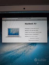 Vendo vecchio MacBook Air 13 pollici (modello Mid 2012) perfetto per chi cerca un portatile economico, per recupero di ricambi, o per usi estremamente basilari (es. videoscrittura leggera con vecchie app compatibili).