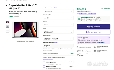 Non si accettano offerte al ribasso . Macbook pro 14 pollici m1 pro , 16 gb ram, 512 gb ssd + coprischermo spigen dal valore di 65 euro montato, tastiera layout USA ottimo se crei codice o programmi, per il resto cambia solo la disposizione dei tasti. Vendo completamente riformattato. cavo magsafe e carica batterie incluso. tutto come nuovo ... tenuto maniacalmente non un graffio ,vendo solo perchè ho trovato un m1 max con piu' ram e ssd che voglio prendere per fare un upgrade. Evitate offerte scambi o compensazioni perfavore.