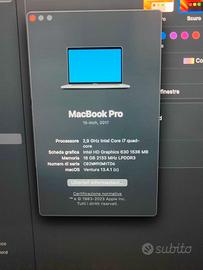 Vendo MacBook Pro 15" 2017 come da foto con intel i7 16GB RAM DDR3 e SSD 500GB