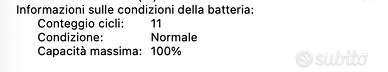 Vendo MacBook Pro 14" M1 Pro (16GB RAM / 512GB SSD) in condizioni pari al nuovo, appena rientrato da intervento ufficiale Apple. A differenza di molti altri annunci, questo è praticamente come comprarlo nuovo: a fine marzo è stato fatto un intervento completo da Apple per sostituzione batteria e in cui sono stati sostituiti scheda logica, tastiera, Touch ID e porta MagSafe. La batteria ha solo 11 cicli di ricarica (come da foto allegata) ed il Mac è già aggiornato all’ultima versione di macOS (Tahoe). Esteticamente presenta solo un piccolo segno sull’angolo destro. A testimonianza delle ottime condizioni, la tastiera non presenta la classica usura che rende i tasti lucidi. Dispongo di tutto il corredo originale: scatola, caricatore e cavo MagSafe. Posso mandare altre foto più dettagliate in privato senza problemi. Preferibile scambio a mano a Roma zona San Giovanni / Tuscolana. Per qualsiasi informazione scrivetemi pure.