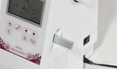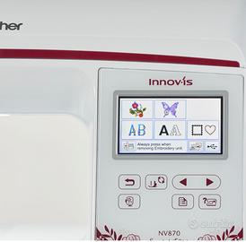 Innov-is NV870SE è ricca di funzioni utili: dall'infilatura automatica dell'ago alla rapida realizzazione di scritte, così come la modifica e il ridimensionamento dei ricami sullo schermo. Porta USB per caricare i ricami direttamente nella macchina.