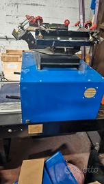 -Macchina serigrafica Stampasciuga compatta 4 colori + 2 piani rotanti +forno -Essicazione ink plastisol- solvente - acqua -Velocità tappeto regolabile -Temperatura formo max 180° C -Tunnel essiccazione 600x520 mm. -Pannello termico altezza max 20 cm. -Cappa Flash (optional) - Tensione di alimentazione 220V -Potenza assorbita in accensione 3000W -Fase singola -Frequenza 50/60 hz -Peso 150 kg. Marcatura CE -Ingombro 1800x660xh1000 mm. -Ganascia blocca quadro completa di microregistri -Completa di ruote per essere spostata con grande facilità -1 solo stampatore per fare produzione