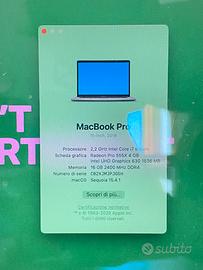 Vedo Macbook Pro 15” 2018 per inutilizzo Le condizioni sono perfette , Per le specifiche vedere foto allegate