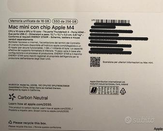 MacMini M4 16GB RAM 256GB SSD perfetto,pari nuovo