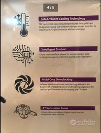 Con il Cooler Master MasterLiquid ML360 Sub-Zero, il produttore presenta un sistema di raffreddamento ad acqua completo molto potente con tecnologia Intel Cryo Cooling. La combinazione di un radiatore da 360 mm e un convertitore elettrotermico (elemento Peltier) raffredda i processori Intel ML360 Sub-Zero al di sotto della temperatura ambiente. Grazie al suo design semplice e silenzioso, ML360 Sub-Zero è anche molto adatto per PC workstation.