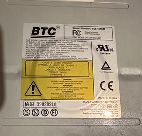 Masterizzatore CD RW marca BTC, velocità 16x10x40, usato e funzionante, per PC desktop.