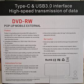 Vendo masterizzatore esterno DVD-RW compatibile con connessione USB 3.0 e Type-C. Prodotto nuovo, mai usato, ideale per notebook e PC desktop. 🚀 ✅ Supporta lettura e scrittura ✅ Plug & Play, non richiede installazione driver ✅ Compatibile con Windows e Mac OS ✅ Design sottile e pratico, perfetto per casa, ufficio o viaggio 🎒 📦 Condizioni: nuovo 🔌 Connessioni: USB 3.0 / Type-C 💻 Compatibilità: laptop e desktop