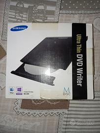 Masterizzatore esterno Samsung slim portatile nero con pellicola trasparente e scatola originale. in dotazione 2 CD più foglio illustrativo.
