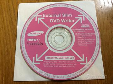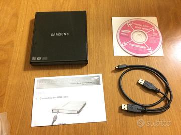 Masterizzatore samsung portatile DVD-RW esterno , pari al nuovo ha ancora la pellicola di fabbrica nella parte superiore , completo di cd con driver e softwere cavo .
