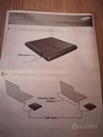 Samsung SE-S084D è un masterizzatore DVD esterno ultra-slim, vincitore dell'iF Product Design Award, caratterizzato da un design compatto con angoli smussati, ideale per netbook e notebook. Offre una velocità di lettura/scrittura fino a 8x per DVD±R, 24x per CD-R/RW, interfaccia USB 2.0, buffer da 1.5 MB e caricamento a cassetto, garantendo silenziosità e portabilità