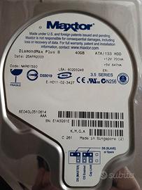 Vendo hard disk IDE Maxtor DiamondMax Plus 8 da 40GB – modello da 3.5", 7200rpm, interfaccia ATA/133 (IDE, PATA).