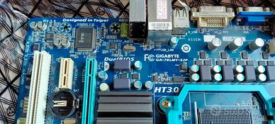 scheda madre completa di processore AMD Athlon II X4 605E (4 core veri a basso consumo) ed adeguato dissipatore con ventola a basso rumore e ben 8Gb di ram DDR3 (2 x 4Gb) accetta anche banchi da 8Gb!
