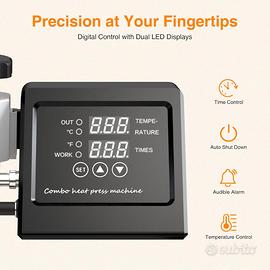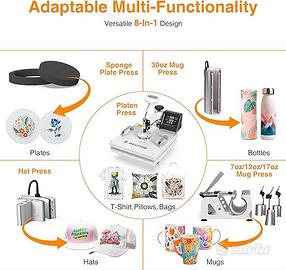 Mecpow Macchina per plotter 8 in 1, 15 x 15 pollici, pressa per stampa T shirt, pressa per tazze, stampa cappello, controllo automatico, rotazione a 360 gradi.