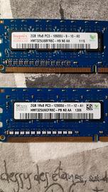 Vendo due memorie RAM da 2Gb, perfettamente funzionante. Specifiche: Capacità: 2 GB Tipo: DDR3 PC3-10600U (non-ECC, unbuffered) Frequenza: 1333 MHz Modello: HMT325U6BFR8C-H9