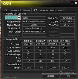 2 slot RAM CORSAIR DDR5 modello cmk64gx5m2b5600z40. Comprate su Amazon 1 marzo 25 ancora in garanzia e assicurazione amazon per 4 anni (pagata a parte).