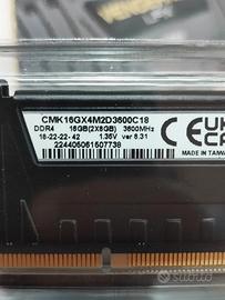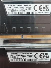 Vendo 32GB di DDR4 in 4 banchi da 8GB l'uno. 2 coppie da 8GB. Sono tutti Corsair Vengeance, Perfettamente funzionanti e testati e da 3600MHZ.