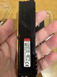 Vendo due stick di memoria RAM HyperX FURY CL16 (16 GB 2 x 8 GB) DDR4 3200 MHz Codice del prodotto: HX432C16FB3K2/16 Acquistati nel 2020. Vendo perche' ho cambiato motherboard e fatto upgrade della RAM. RAM montata solo ed esclusivamente su Gaming PC, perfettamente funzionante. Vendo a 120 euro e solo con scambio a mano a Torino.