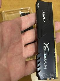 Vendo due stick di memoria RAM HyperX FURY CL16 (16 GB 2 x 8 GB) DDR4 3200 MHz Codice del prodotto: HX432C16FB3K2/16 Acquistati nel 2020. Vendo perche' ho cambiato motherboard e fatto upgrade della RAM. RAM montata solo ed esclusivamente su Gaming PC, perfettamente funzionante. Vendo a 120 euro e solo con scambio a mano a Torino.