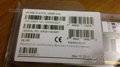 vendo memoria ram per Server HP Proliant specifiche tecniche: dimensione: 4Gb PC3L-10600 DDR3-1333 Single Rank x4 Registered CAS-9 Low Power prezzo listino HP: 105 euro confezione aperta, ma prodotto NUOVO, NON usato. lo vendo per errato acquisto. adatto per ProLiant BL2x220c G6, BL2x220c G7, BL460c G7, BL490c G7, DL320 G6, DL360 G7, DL370 G6, DL380 G7, SL160s G6, SL160z G6, SL170s G6, SL170z G6, SL390s G7, WS460c G6; StorageWorks X1400 G2, X1500 G2, X1600 G2, X1800 G2, X3400 G2, X3800 G2, X3800sb G2; StorageWorks Network Storage Blade X1800sb G2 La foto è quella del prodotto in vendita.